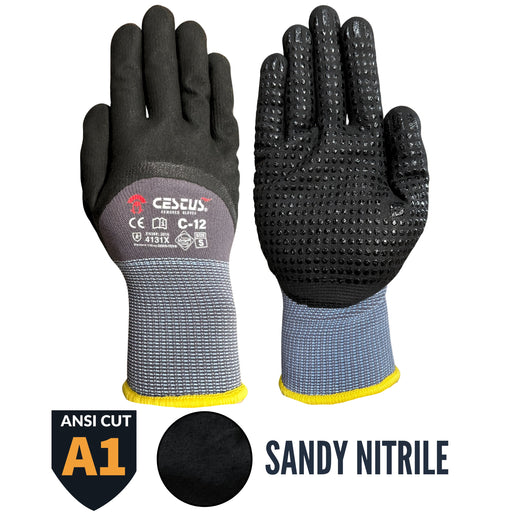 Model C12 For precision handling and general operations. ANSI cut A1 ANSI abrasion 4 ANSI puncture 2 3/4 foam nitrile coating with dots 15g perfo...