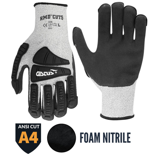 Model 3508 Impact gloves with a foam nitrile coated palm. ANSI cut A7 ANSI abrasion 4 ANSI puncture 3 ANSI impact 1 Sandy nitrile blend increas...