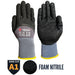 Foam nitrile coated palm with dots for additional grip and abrasion resistance.
