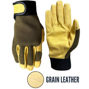 AB grade grain goatskin leather palm with back-of-hand fabric for improved breathability.